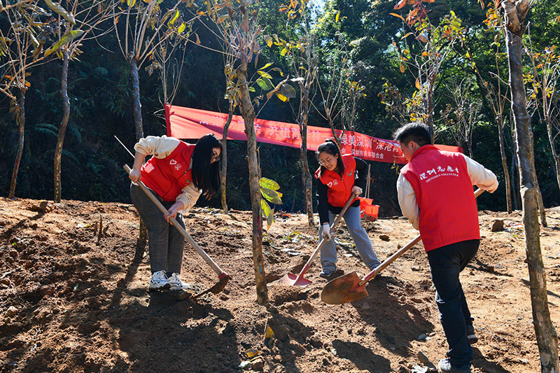 3月12日,深港青年代表在深圳陽臺山森林公園參與植樹。50余名深港青年代表、60余名少先隊員12日在深圳陽臺山森林公園共同種下101株大葉紫薇,并為“深港青年林” “紅領(lǐng)巾林”揭牌,“植”此青綠,見證深港青年友誼常青。